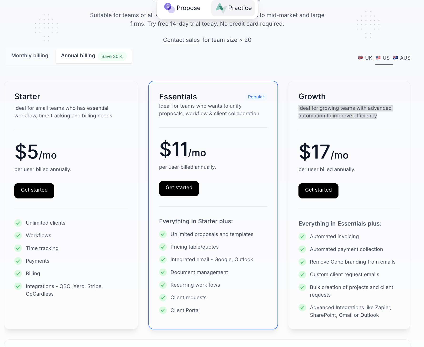 Essentials Plan:The Starter Plan, priced at $11 per user each month. Ideal for teams who wants to unify proposals, workflow & client collaboration.